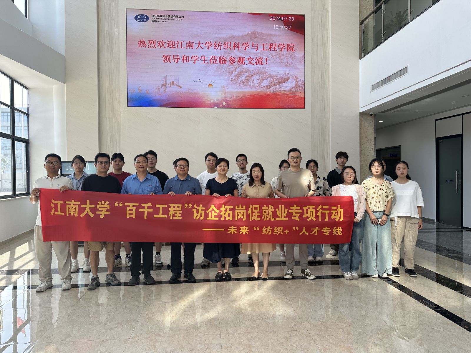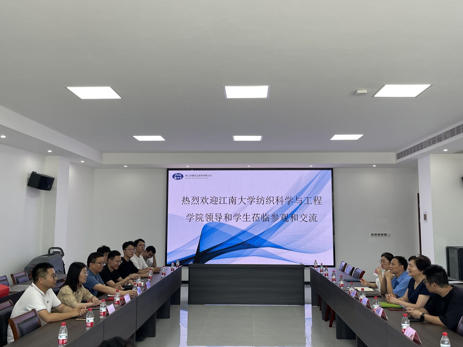 7月23日,江南大學紡織科學與工程學院黨委副書記、副院長楊莉勤,輕化工程系主任殷允杰等一行領導及十余位學生蒞臨彩蝶