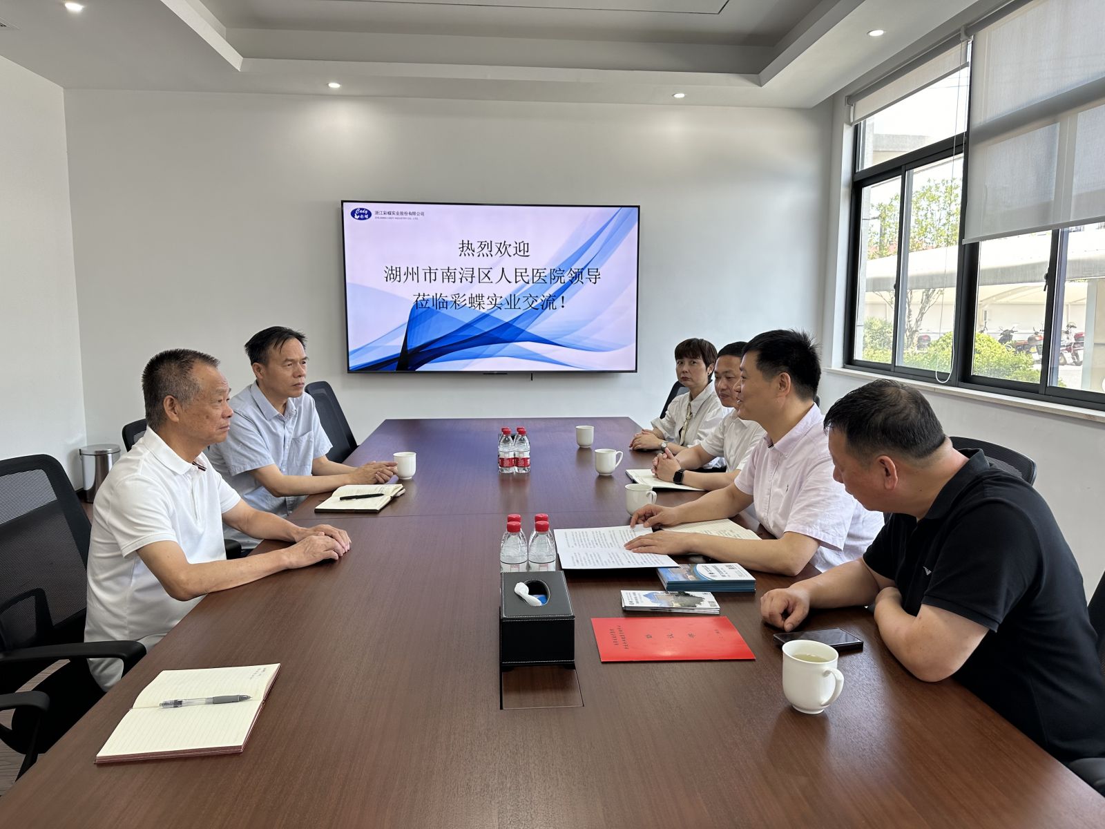 孫漢忠就彩蝶實業(yè)基本情況及今年發(fā)展情況進行介紹。毛建強一行對企業(yè)發(fā)展情況表示肯定,并就南潯區(qū)醫(yī)療集團情況及醫(yī)