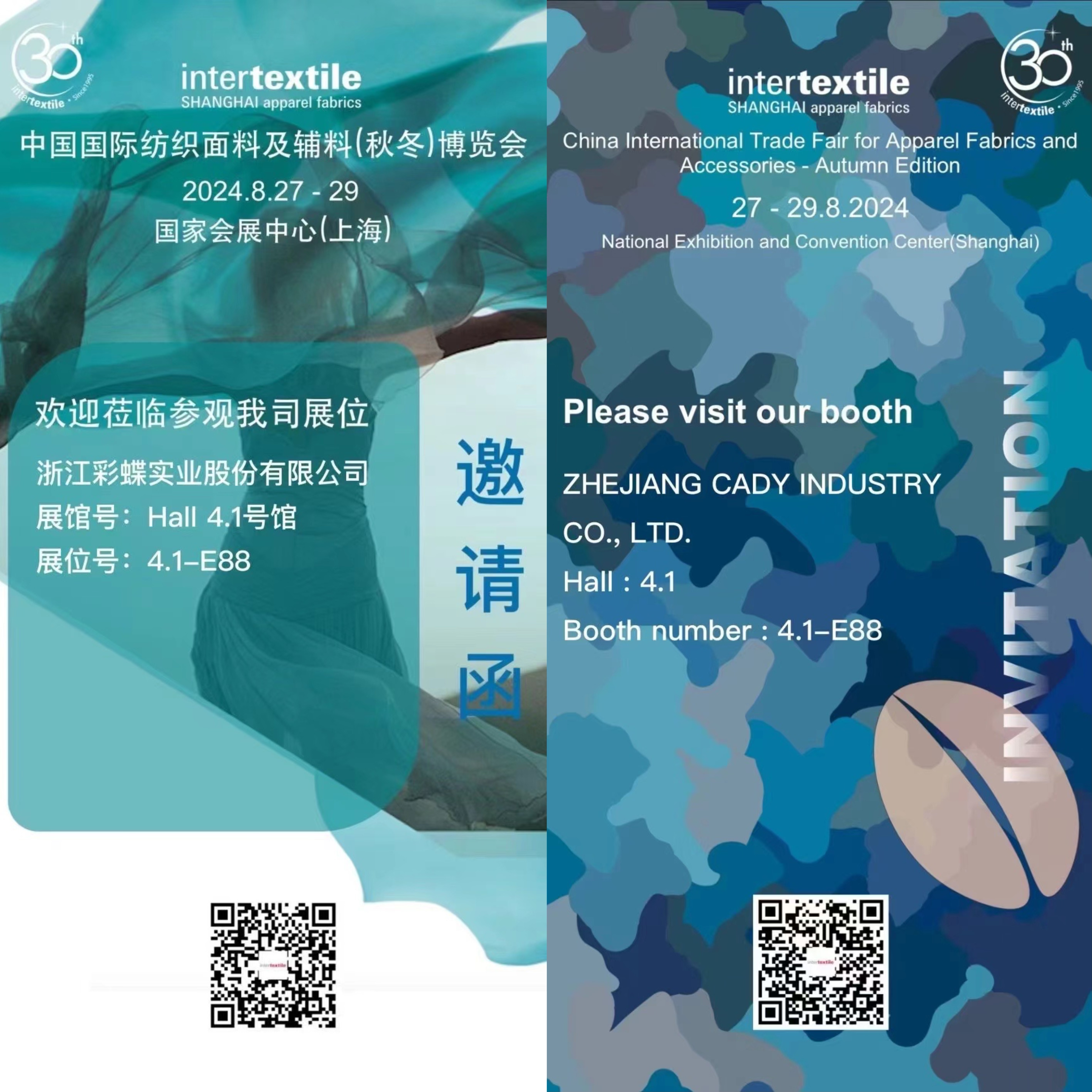 8月27日-8月29日,2024中國國際紡織面料及輔料(秋冬)博覽會在國家會展中心(上海)舉辦。浙江彩蝶實業股份有限公司展